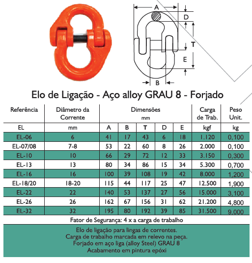 Elo d eligação para lingas de correntes.