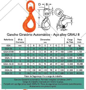 Gancho Giratório Automático - Aço Alloy Grau 8 (GGA)